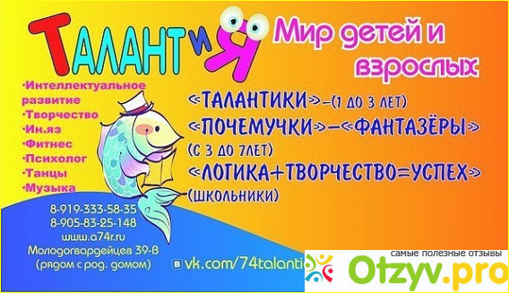 Отдала дочу в "Талантию" на занятия по музыкальным спектаклям. Она сначала и туда стеснялась ходить... но потом со временем дочка преобразилась! Прошло уже полгода как она там довольно успешно занимается, и она сама ко мне подходит и говорит "давай я тебе стишок прочитаю!"... вот что значит педагоги смогли раскрыть ребенка! Сразу видна отличная педагогическая работа с детьми. Спасибо большое педагогам этого центра за развитие и адаптацию моего ребенка. Ярослава теперь ходит на занятия с большим удовольствием и подружилась с ребятишками.