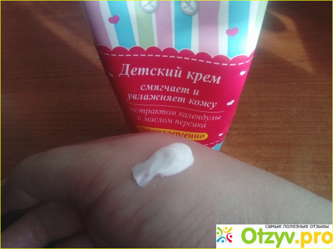 Когда крем детский открываешь, то сразу слышно приятный тонкий аромат. Сам крем белого цвета, при нанесении быстро впитывается. Тюбик большой хватит на продолжительное время. Что очень хорошо. Он экономный. После нанесения кожа становится мягкой. Очень хороший крем.