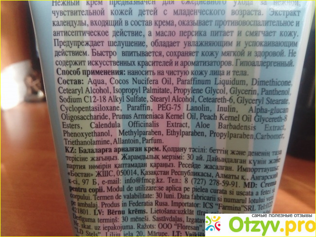 В состав входит экстракт календулы и масло персика. Возраст использования неограничен. Это крем Флоресан.