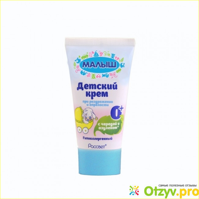 В "Детском мире" взгляд упал на детский крем «Малыш» с чередой и азуленом. Он как раз был предназначен для использования при раздражении и опрелости, и подходил для возрастной категории 0+. Стоил 69 рублей. Произведен московской косметической фабрикой «Рассвет». На тюбике было указано, что продукт гипоаллергенный.