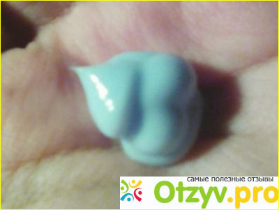 Сам крем не жирный, легкой текстуры голубого оттенка (честно говоря, текстура очень похожа на крем для ног).