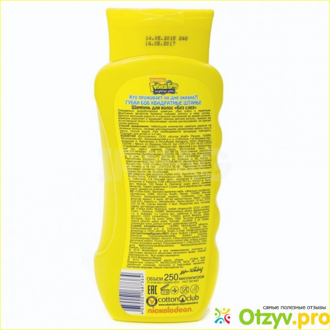 Моя старшая дочка шести лет просто обажает мультик "Спанч боб". И кончно же увидев этот веселенький, желтенький, улыбающися флакон шампуня на полке магазина, просто не смогла пройти мимо.
