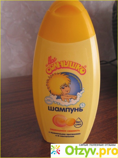 Шампунь с пшеничными протеинами и D - пантенолом "Леденцовая свежесть" покупали для нашей малышки в магазине "Лента" за 48 рублей (стоимость я немного округлила и указала без копеек). Выпускается он под маркой "Мое солнышко" и применять его можно для деток с 1 года.