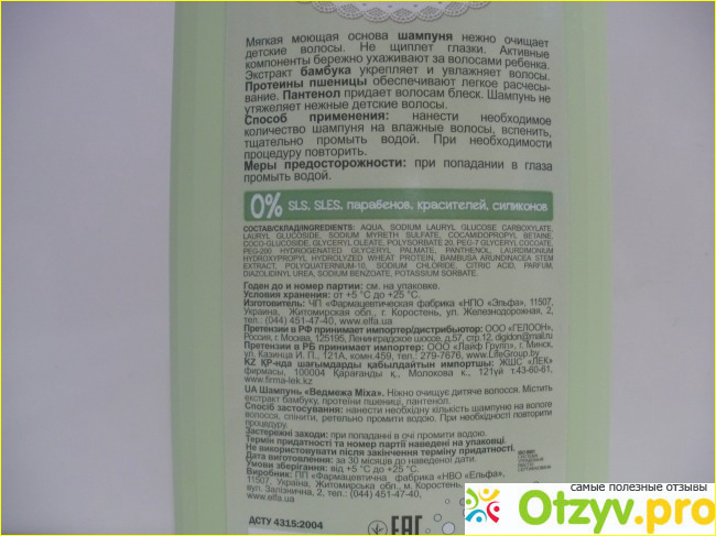 - плохо пенится , но это не совсем минус. Так как тот факт, что шампунь плохо пенится всегда говорит о том, что в составе действительно отсутствуют SLS ,SLES и т. д.