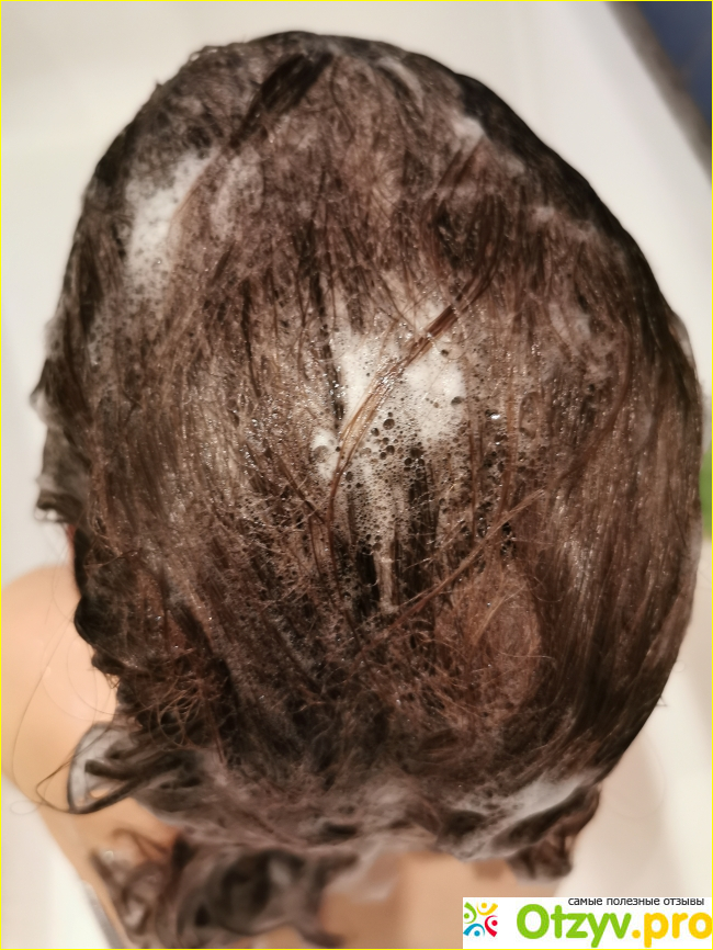 Пенится он не сильно, пена не обильная, но плотная и легко распределяется по всем волосам до самых кончиков.