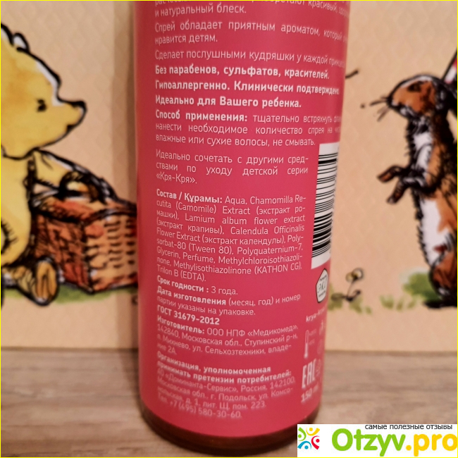 Теперь она сама несет мне свой флакон с жизнерадостным утенком Кря-кря, чтобы я ее причесала. Нам достаточно пары-тройки пшиков на всю голову и волосы легко расчесываются и становятся послушными, блестящими и приятно пахнут леденцами.