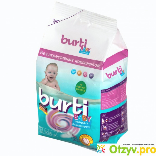 Бесфосфатный концентрированный стиральный порошок для стирки детского белья Burti Compact Baby изготовлено в соответствии с рекомендациями ЕЭС и одобрен дерматологами. Стираю вещи с рождения, алегических реакций нет! Для меня это самое главное!