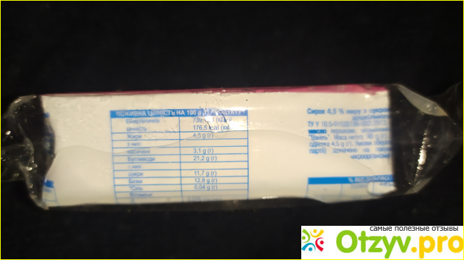 Творожок натуральный молочный, он просто сладкий и с ванильным ароматом, без растительного масла и вредных добавок. Жирность хорошая, 4,5%. Творожок нежный, вкусный и сытный.