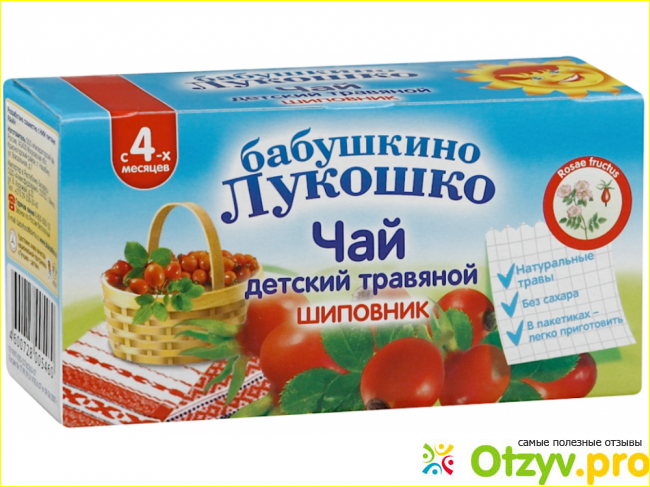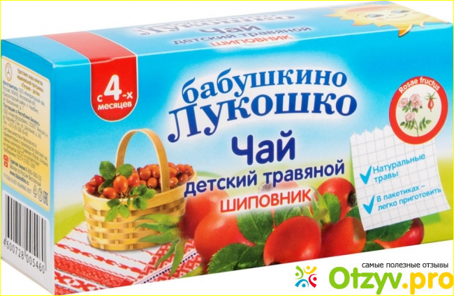 Чай предназначен детям от 4-х месяцев. В составе только перемолотые плоды шиповника.