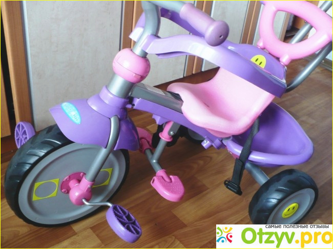 Велосипед Tilly Trike Combi Trike 3 in 1 иы выбрали, пересмотрев множество моделей в интернете, купили в итоге вот такой эконом-вариант. Обошелся он нам совсем недорого, так как купили мы образец с витрины со слегка выгоревшим на солнце сиденьем (так что у нового велосипеда сиденье должно быть более насыщенного розового цвета, чем у нашего).