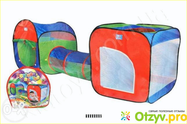 Так же в наборе идет 100 шариков из мягкого пенопласта. Ими можно играть как в тунеле, так и в палатках.