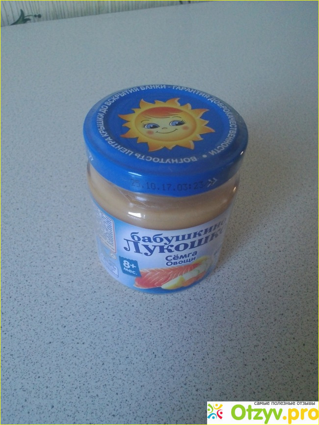 Из выбранных нами основных марок ребенку на вкус очень нравится Тёма и Лукошко. Что мне нравится в пюре Б. лукошко, это то, что там есть рыбное пюре, чего нет например у Тёмы. Вот например на фото пюре семга и овощи.