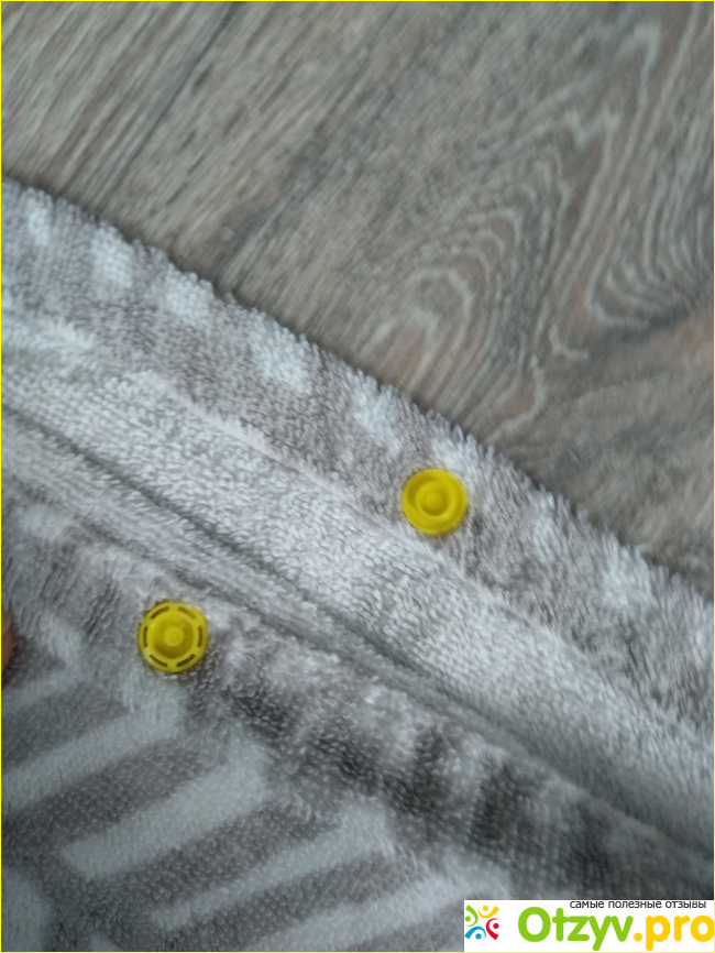 Сбоку полотенца есть специальные кнопочки, мы их используем редко. Также очень удобно, что есть петелька, которая позволяет вешать героя отзыва на крючок.