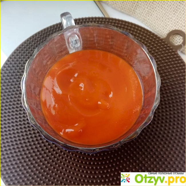 Само пюре выглядит очень аппетитно. Его цвет натуральный, естественный. Прям как у настоящей моркови.