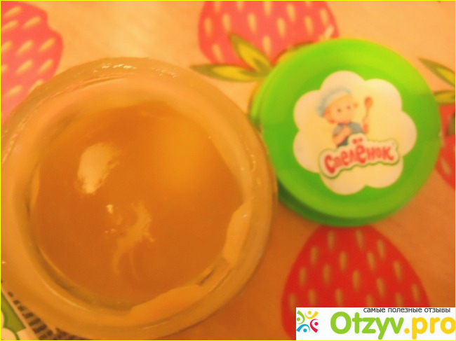 и решила ее попробывать. Что я могу сказать о составе, не удобно кормить, очень жидкое пюре у ребенка все течет по подбородку, вся одежда пачкается, и отдает вкусом яблока и запах яблока, согласитесь странно это в кабачке яблоко. Ну мы ели три дня а на четвертый день ребенок от первой же ложки сморщился и стал реветь, не могла долго успокоить. Позже пошла мыть баночку и вылела всю пюрешку в раковену и там было ЧТО ТО , толи семечка от кабаяка толи крысинная какашка. Как же настроение подпортилось, я чуть не накормила ребенка этой штукой. это что то черного цвета и мягкое. фууу. Как так получилось непонимаю,ведь я вмегда перемешиваю содержимое баночки. Если это всетаки семечка от кабачка то значит в в пюре превращают не только саму мяготь кабачока а и все семечки и даже кожурку от него. Мамочки будьте внимательны!!!! Лучше все вылить в детскую тарелочку и перемешать, что бы убидится что там не чего нет. Больше я не куплю пюрешку Спеленок! И вам не советую.