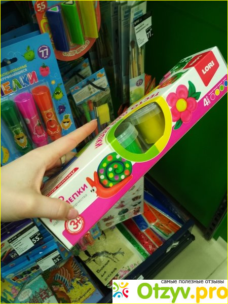 У нас сложились только положительные эмоции. В упаковке теста для лепки всего 4 цвета. Каждый цвет находится в отдельном контейнере. Удобно доставать и обратно складывать.
