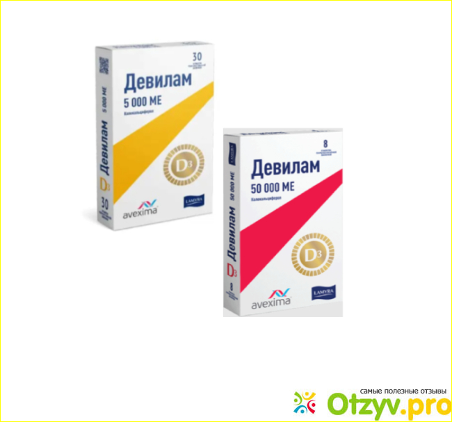 Есть две дозировки 50000 ме и 5000 ме, я принимал 5000 ме, по 1 таблетке 1 раз в день. Эффект от приема стал замечать практически сразу, сил в организме стало, как будто больше, после нескольких таких курсов заметно укрепился иммунитет, болею реже. Из минусов, ничего такого не заметил, могу лишь выделить, что Девилам не продается на озон, поэтому приходится заказывать его на аптеке. ру, но это не критично.