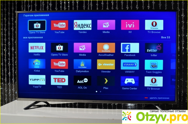 По функционалу здесь есть все, что имеется у более дорогих брендов, по более высокой цене. Между тем, качество остается отменным и выше всяческих похвал. Чаще всего я конечно пользуюсь обычным режимом трансляции телеканалов. Иногда экспериментирую меняя особенности картинки и звука. Иногда ко мне в гости приходят пожилые бабушки и дедушка, и через ТВ я показываю им фотографии с последних праздников, только так они могут все рассмотреть действительно четко. К интернету подключаемся не часто. Так как для этого есть масса других девайсов дома. Я в восторге от звука, и картинки. Но, вот недавно ко мне приходил представитель Уфанет и сказал, что смарт тв служит всего пять лет. НЕ знаю правда ли. Надеюсь на более длительное использование.