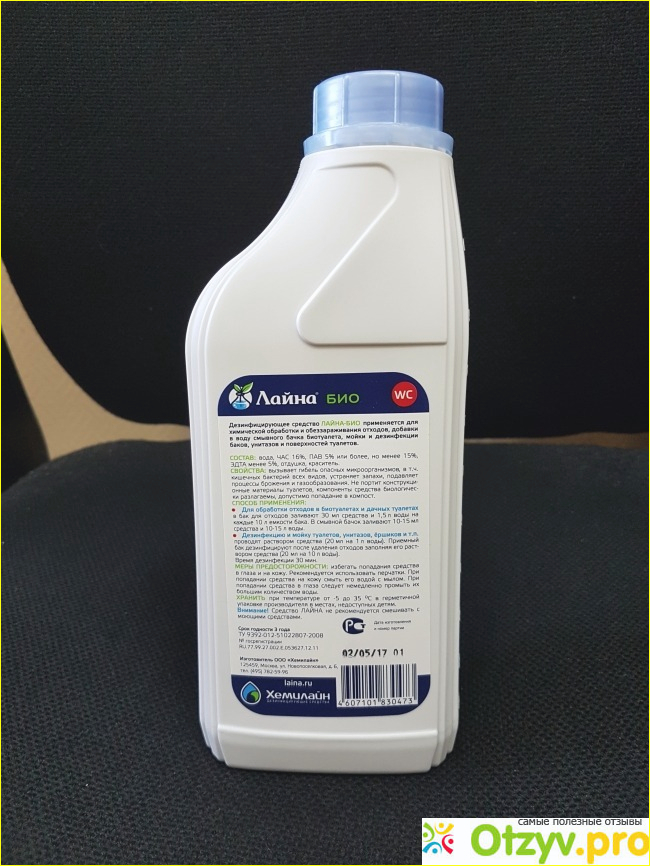 Важное отличие Лайны-био от аналогичных препаратов – дезинфицирующий эффект. Т. е. помимо устранения запахов, средство помогает бороться с бактериями и микробами, что согласитесь, немаловажно, когда дело касается туалета.
