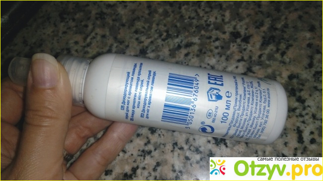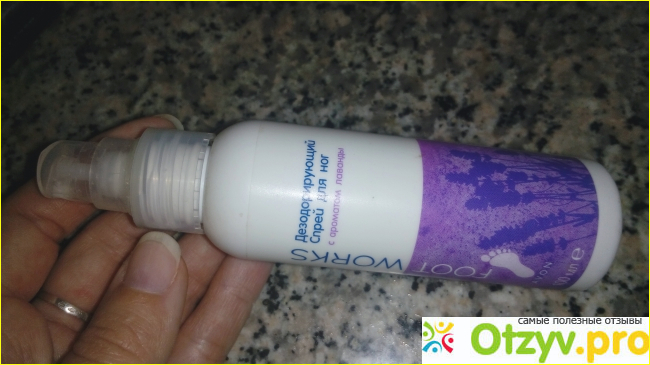 Производитель обещает что этот спрей нейтрализует запах и охлаждает кожу ног. Запах действительно хорошо нейтрализует, особенно это заметно в спортивной обуви. Дезодорирующий эффект действительно присутствует, и вполне неплохой, но хотелось бы чтобы эффект был более длительный.