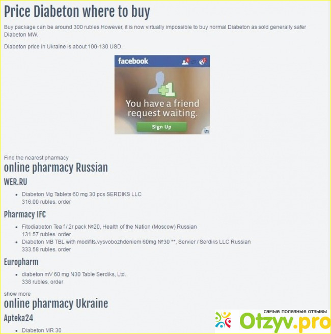 На оригинальном сайте и в фейсбукепоказано, что Диабетон МВ (Diabeton MW)стоит БОЛЬШЕ 100 долларов. Российские аналоги - от 300 р. за упаковку в 30 штук. Если вам предлагают за эти деньги, то может это не настоящий Диабетон?