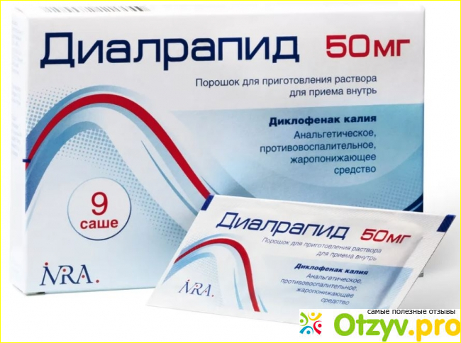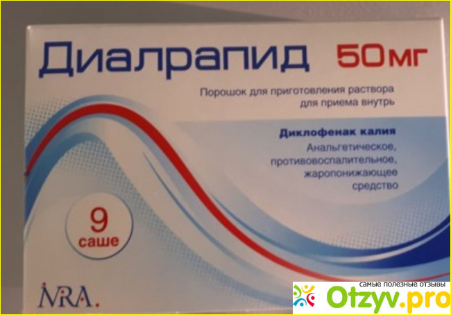Одним из действующих препаратов, который можно применять в большом количестве случаев, является Диалрапид, в основе которого диклофенак. Этот компонент способен быстро и наилучшим образом всасываться через ЖКТ. Если принять средство необходимо однократно, то одно саше начинает действие буквально через минут 20-60 и действует достаточно долго.
