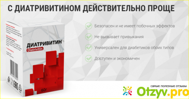 Диатривитин- избавит вас от всех симптомов сахарного диабета, уверенно заверяет нам реклама и производители этого средства!! Но это может оказаться совсем неправдой!! Я , побороздив по просторам интернета, натыкалась на кучу отрицательных отзывов о данной препарате!! Очень мало людей пишет о реальной помощи этого средства, а даже если и пишут, то данные лица пользовались продуктом в течение маленького количества времени. Реклама любого лекарственного средства в частности направлена на психологическое внушение человеку его якобы положительных свойств, но иногда это может оказаться совсем не так, лекарство может оказаться и не лекарством вовсе. Так, огромное количество людей пишет о том , что лекарственное средство совсем не имеет положительного воздействия на данный недуг.