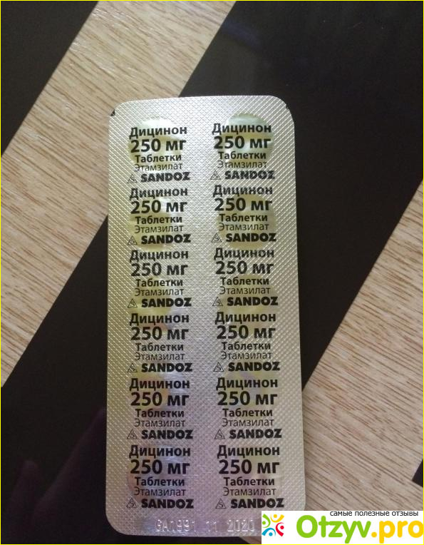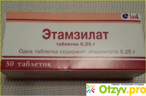 Я купила таблетки в картонной коробке, действующее вещество называется "этамзилат", в каждой таблетке - 250 мг действующего вещества. Есть и вспомогательные компоненты.