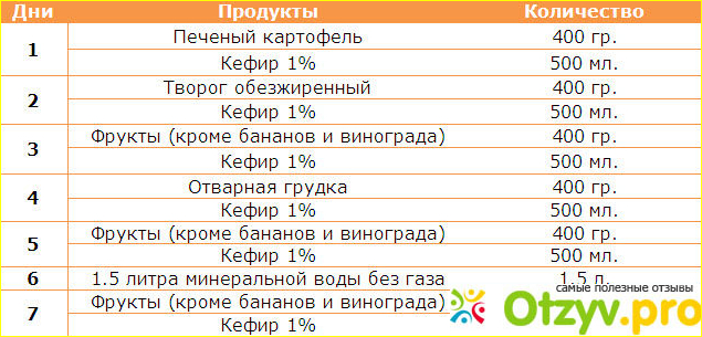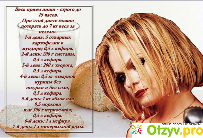 Вроде бы ничего нового. Дробное питание, монодиета, жесткий контроль и будет вам счастье. На самом деле, это все легче написать, чем выполнить. Как по мне, так лучше вообще ничего не есть, просто пару раз в неделю устраивать себе обычные разгрузочные дни на воде. Это гораздо легче, чем быть голодной всю неделю. Я вполне верю, что при таком питании не сложно похудеть на 7 килограмм за неделю, но это очень не комфортное похудение, я вам скажу.