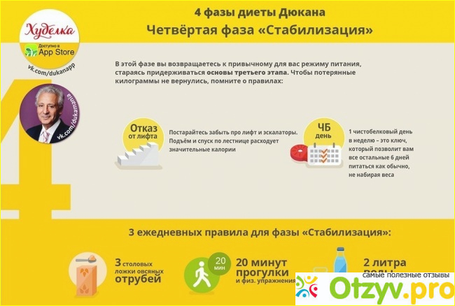 Только с положительной точки зрения я смотрю на такой способ похудения, поэтому ставлю диете Дюкана заслуженную максимальную оценку. Результаты действительно приходят, если соблюдать все вышеперечисленные правила. Не надо мучить себя дикими диетами, нужно лишь частично оградить себя от вредной пищи и уделять внимание физическим нагрузкам. Благодарю за внимание!