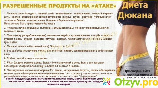 Пьер Дюкан разработал таблицу похудения. Вам нужно будет пройти три этапа из четырех. Потому что последняя стадия похудения не имеет временной рамки, вы лишь будете поддерживать себя в норме. Основная задача состоит в том, что каждый день вы должны съедать по несколько столовых ложек овсяных отрубей, как можно больше ходить пешком и соблюдать ту диету, которая представлена в его таблице. Существенные результаты приходят уже на первой фазе диеты, которая называется "Атака", я ее еще называю голодание, но при этом вам доступен перечень разрешенных продуктов питания.