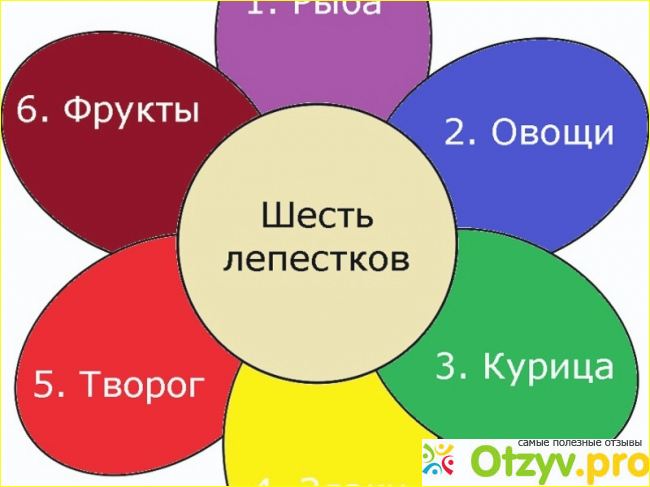 Само название - 6 лепестков - подразумевает 6 дней, посвященных одной моно диете в день. Другими словами, эта диета раздельного питания. А чтобы худеть было весело и с настроением - нужно вырезать из картона красивый цветочек с шестью лепестками и написать на них название диеты, которой посвящен этот лепесток.