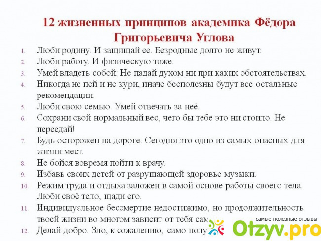Данная система питания была создана умнейшим человеком, долгожителем, доктором наук Угловым Федором Григорьевичем. Он прожил 103 года, и на протяжении всей жизни не имел веса более 65 кг. При этом всегда считал что ожирение , избыточная масса тела являются причиной множества болезней. И что именно это оказывает крайне негативное влияние на все внутренние органы.