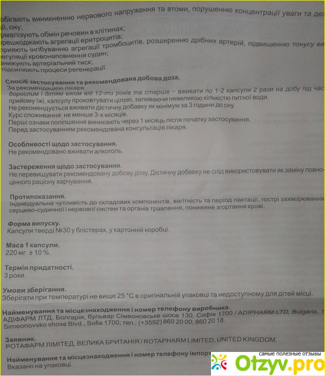 На этот раз мама сделала точно так же. Лекарство оказалось довольно дорогим – 294 грн. (около 730 рублей), особенно если учесть, что это не лекарственное средство, а диетическая добавка, содержащая экстракт листьев гингко билоба и травы центелы азиатской.