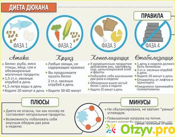 Диета состоит из четырех фаз: