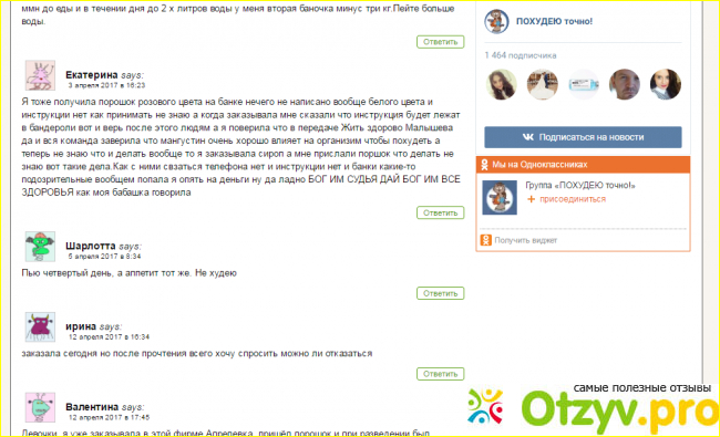 Есть там отзывы и комментарии живых людей, которые делятся отзывами о Турбослиме, о Диетрессе, о различных чаях и кофе для похудения.