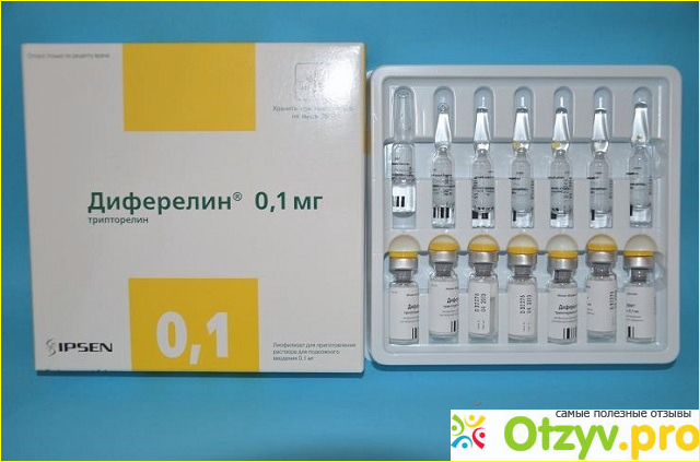 Диферелин представляет собой лиофилизат для приготовления суспензии. Тут еще нужно пояснить, что такое лиофилизат. Есть активное вещество, его высушивают и помещают в баночку. Потом туда добавляют жидкость, обычно это вода для инъекций с каким нибудь веществом. Так получается суспензия, которую и вводят внутримышечно. То есть лиофилизация, это возможность сохранить активное вещество методом высушивания.