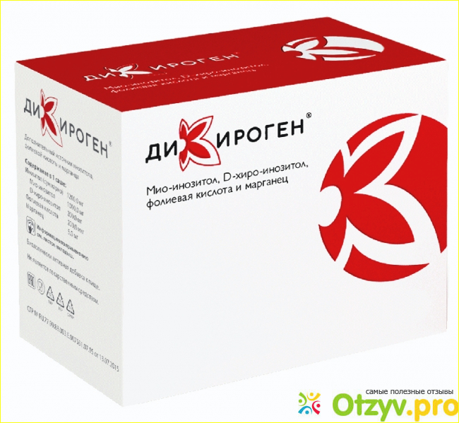 Так, перед нами препарат Дикироген, страна-производитель - Италия, способ выпуска препарата - порошок для приготовления раствора для приема внутрь. Количество саше в коробке - 30 штук. Здесь содержатся активные вещества: инозитол в дозе 1200 мг + 50 мг марганца + 200 мкг фолиевой кислоты. Как видим, в составе присутствуют только природные минеральные и витаминные вещества, поэтому препарат относится не к гормональным агентам, а к биологически активной добавке. Но, как известно, бады не являются лекарственными средствами, поэтому к ним нужно относиться с большей осторожностью. Они не лечат патологию, они просто останавливают поверхностные симптомы. Более того, такие бады нужно лечить не менее трех месяцев, так как здесь действует принцип накопления активных веществ в организме. Если принимать лекарства менее трех месяцев, то обычно от них никакой пользы не будет.