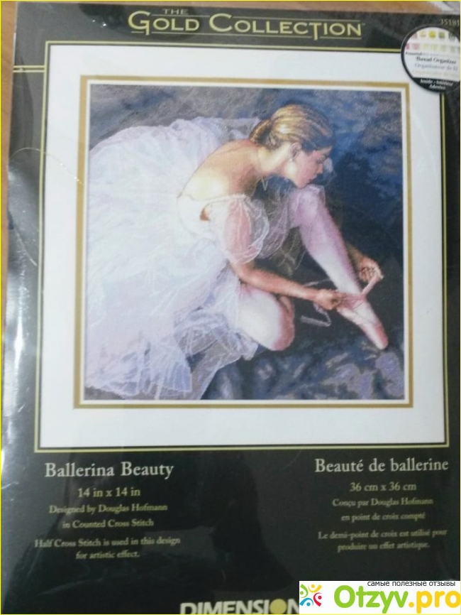 Так я решилась приобрести набор "Прекрасная балерина" от Dimensionis. Приобреталась картина за 3320 рублей. Для меня это дороговато, но если учесть что она будет радовать меня и украшать интерьер долгие годы, то это вполне разумная цена. Здесь изображена юная балерина в пачке, которая сидя на полу перевязывает свои пуанты. В комплект входит канва Аида белого цвета, трехцветная символьная схема, инструкция, игла, мулине. Размер готовой работы 36*36 см. Комплект высокого уровня сложности, рекомендован для использования с 14 лет. Производитель имеет очень хорошую репутацию на рынке среди вышивальщиц, его часто подделывают, поэтому для меня было большой удачей найти оригинал.
