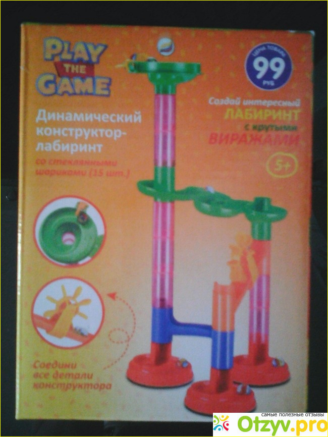 В компактной упаковке находится лабиринт в разобранном состоянии инструкция и 15 стеклянных шариков, которые потом весело по нему запускать.