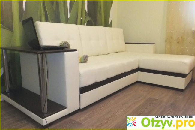 У этой модели всё продумано до мельчайших мелочей. Это просто идеальная модель. Наш диван из экокожи, ткань приятная и можно почистить её без труда, особенно если что-то разлить, а такое у нас бывает часто, а диван у нас в светлом цвете, практически бежевый, потому я бегаю с тряпкой и вытираю всё что можно. Этот цвет не практичный, как не вытирай, нужно было выбрать более тёмный оттенок.