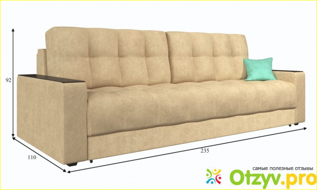 Небольшие размеры дивана превращаются в достаточно просторные после того, как такой диван будет разложен. Разница в спальном месте по сравнению с моделью, имеющей подлокотники — 25 см. С одной стороны это очень мало, но когда кто-то из супругов имеет немаленькую комплекцию — лучше призадуматься о другой модели, что мы и сделали.
