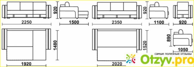 Размер спального места такого дивана составляет 225 х 150 см.