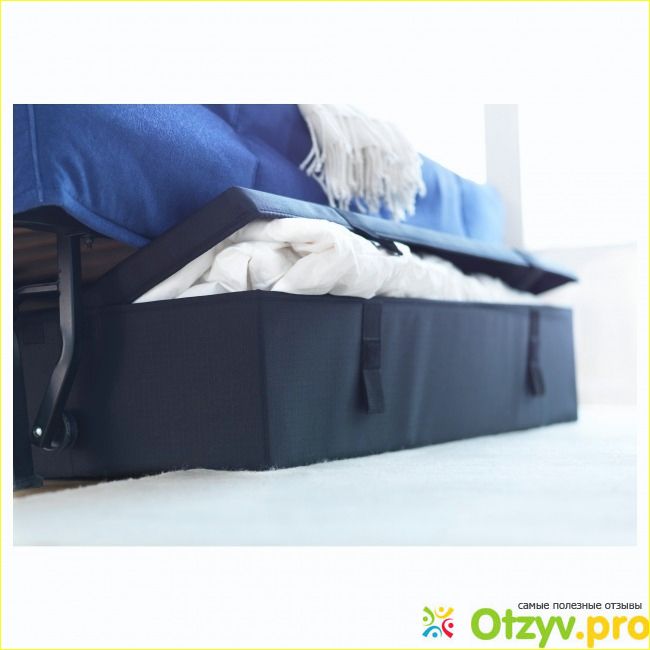Не обязательно каждый раз стоит расскладывать диван, если Вы его рассматриваете, как зона для отдыха гостей, то и просто так можно не раправлять, а если покупать данную модель именно для сна, то его можно не заправлять, а использовать как самую настоящую двух спальную кровать, а под нее в качестве экономия места поставить еще коробки фирмы икея с различными вещами и мелочами.