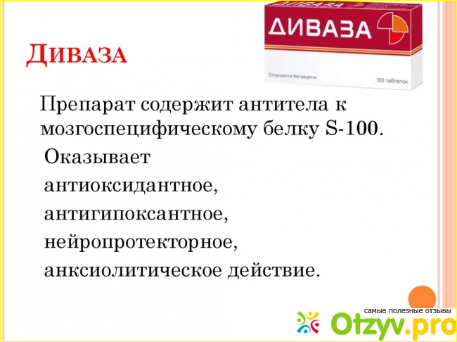 Евгений. Я сам никогда не покупаю такой "препарат", потому что не верю, что гомеопатия может помочь. С внешней стороны это больше эффекты самовнушения сейчас, в легких случаях могут помочь. Таблетки для рассасывания "Диваза" известны как ноотропный препарат. Якобы расширяет кровеносные сосуды и все остальные. На самом деле, это целлюлоза покрыта водно-спиртовым раствором определенных антител к "белку". В общем, целлюлоза. Много гомеопатических лекарств, которые могут помочь, но не в этот раз! Давление было 150/70, а через неделю "Диваза" 200/100. Все не так просто! Она стоила 100 таблеток по триста пятьдесят рублей, на курсы которых ушло более 5 упаковок. Дорого для целлюлозы! Верить в гомеопатию - значит пить Диваза. Мне нужна настоящая медицина, а не гомеопатия. Поэтому не рекомендую препарат Диваза друзьям. Разбавление белка в 100 раз.