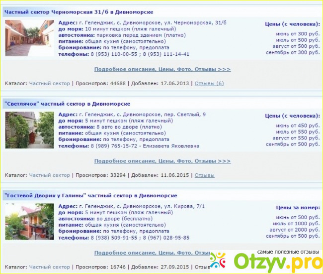 ВЫ зависимости от месяца цены начинаются от 200 рублей и выше. Цена зависит также от удаленности от моря и уровня обслуживания. Расписывать цены не буду, просто приведу несколько рисунков, на которых видны цены в гостиницах, пансионатах, санаториях.