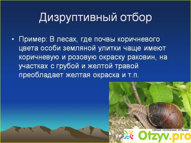 Известно, что естественный отбор является одним из важнейших биологических процессов эволюции. Существует много вариаций признаков, и некоторые из них вызывают больший или меньший репродуктивный успех человека. Эффект отбора заключается в том, чтобы продвигать определенные аллели, черты и индивидуумы, которые имеют более высокий шанс выжить и воспроизвести в своей конкретной среде. Поскольку среда имеет пропускную способность, природа воздействует на этот способ отбора на отдельных лиц, чтобы позволить только самому пригодному потомству выжить и воспроизвести весь свой потенциал. Чем более выгодна эта черта, тем чаще она будет распространяться среди населения. Отбор - это особый тип естественного отбора, который активно выбирает против промежуточного населения в популяции, благоприятствуя обеим крайностям спектра.
