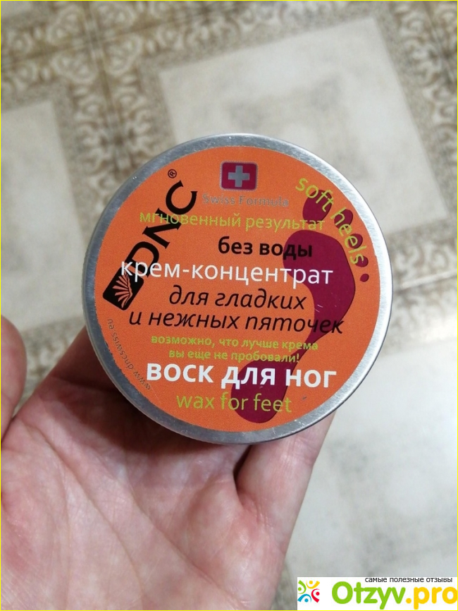 Я прекрасно знаю, что для того, чтобы привести ножки в порядок, не достаточно просто мазаться кремом. Прежде всего необходимо избавиться от ороговевших клеток. Это можно сделать при помощи просто таза с теплой водой и использования пемзы. Можно сделать аппаратный педикюр. Самое главное убрать все мертвые клетки, которые будут препятствовать впитыванию крема, и хорошего эффекта не будет. Это был мой первый шаг. И уже затем использование воска от ДНС. Он густой, жирный, желтоватого оттенка, внешне и по своему специфическому запаху напомнил мне бальзам звездочка.
