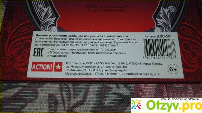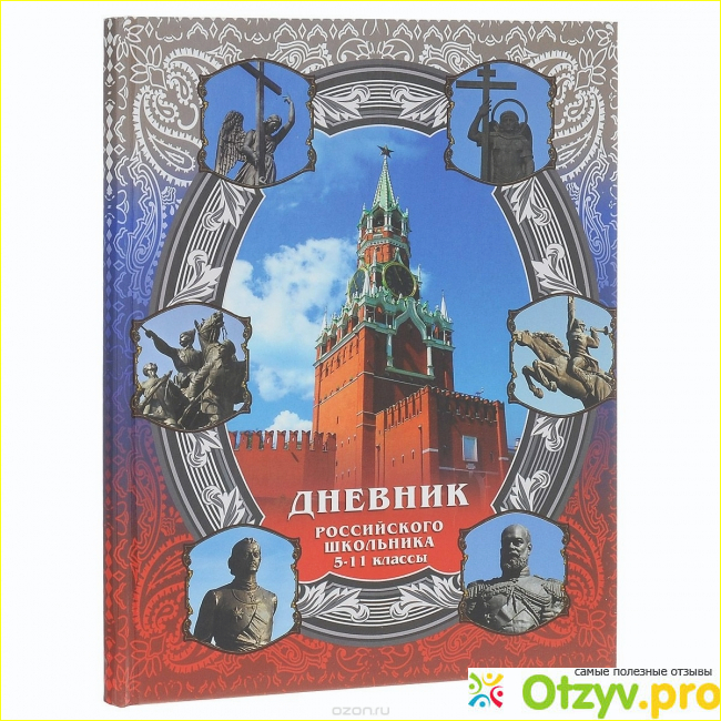 Если сравнивать современный дневник российского школьника с тетрадами из СССР, то тут схожесть только в наличии государственного гимна на задней стороны обложки. Представляю вариант от производителя с названием арго книга. На передней части красуется Спасская башня московского Кремля.