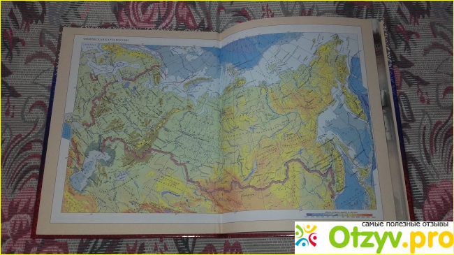 Скорее всего данный факт запишу в преимущества под видом дизайна. Все равно основной фон напоминает флаг Российской Федерации. На развороте можно найти географическую карту нашего государства. Оно большое и занимает целых два листа.